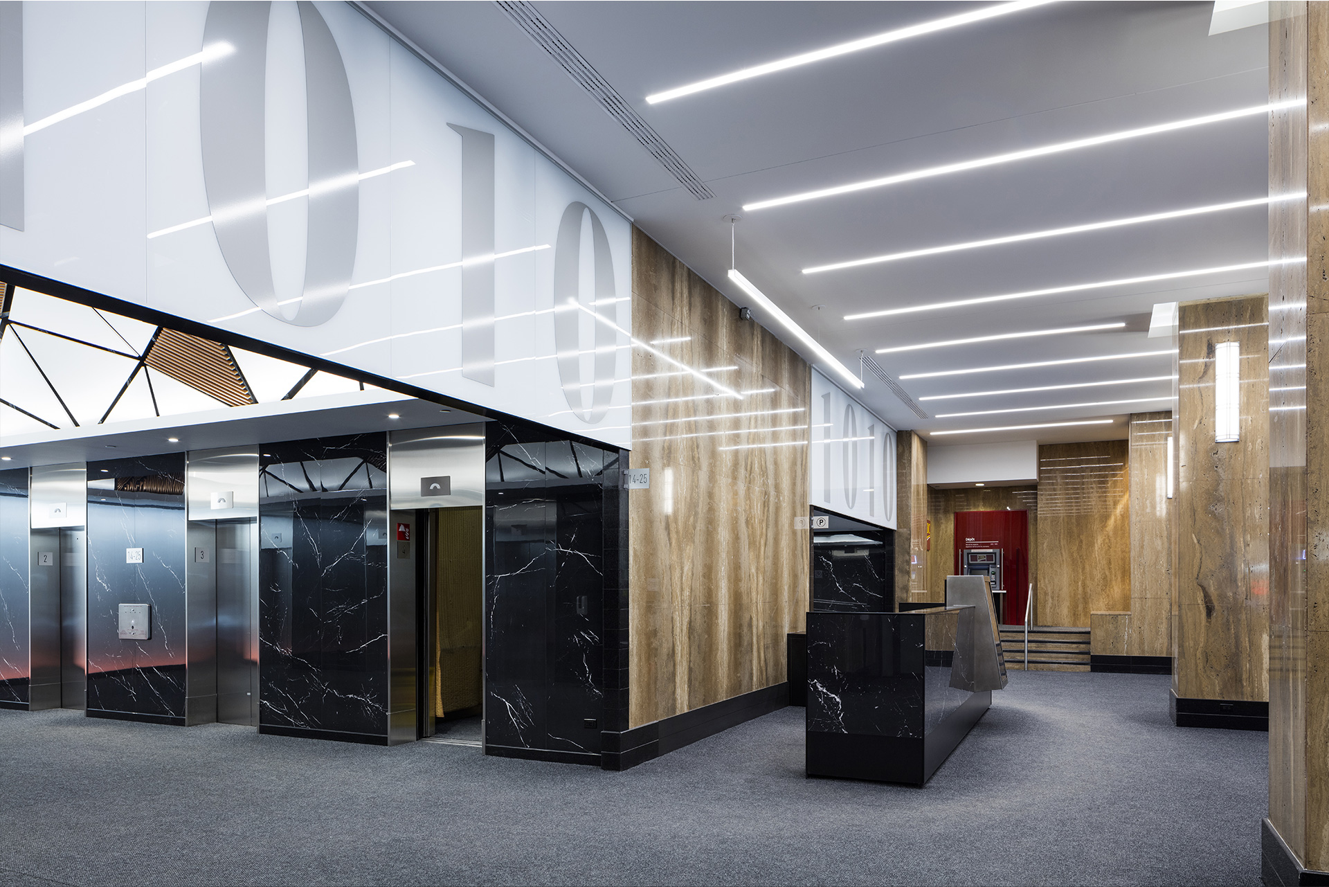 Ce projet comprend le réaménagement intégral du hall d’entrée de cet immeuble, alliant modernité, fonctionnalité et accueil chaleureux.
