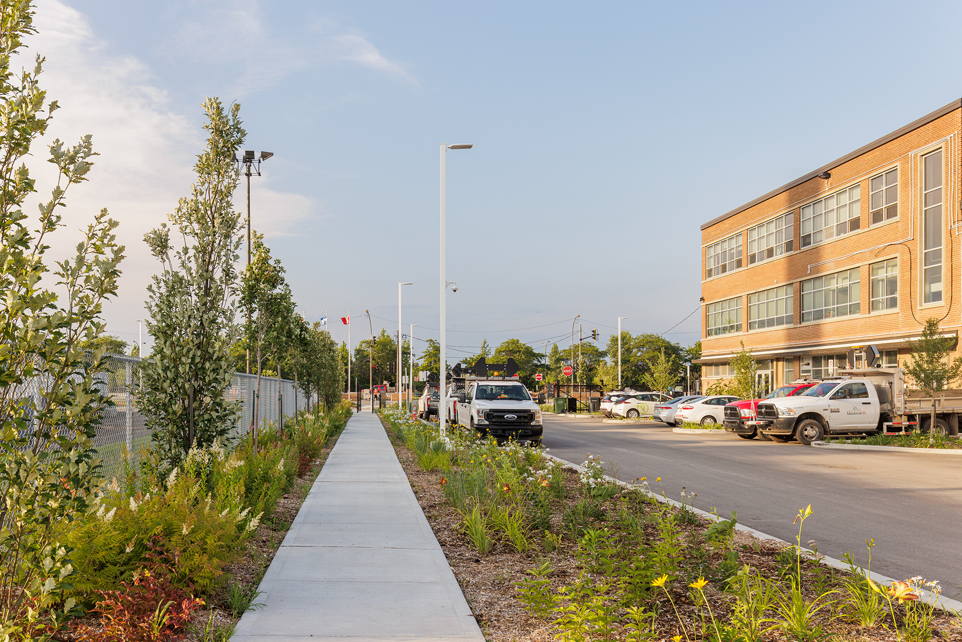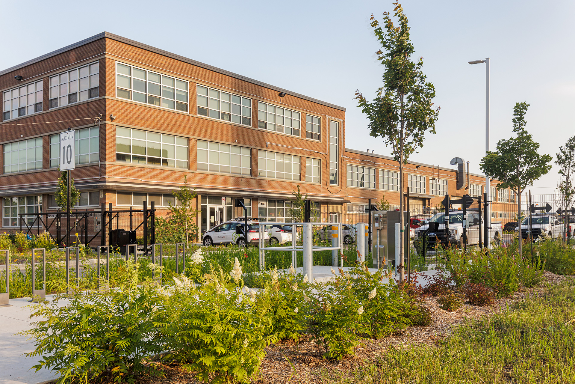 Ce projet vise la mise aux normes de l’aménagement extérieur de la cour de services. Conçu pour offrir un environnement sécuritaire aux usagers et répondre aux principes du développement durable, il a obtenu la certification LEED Argent.