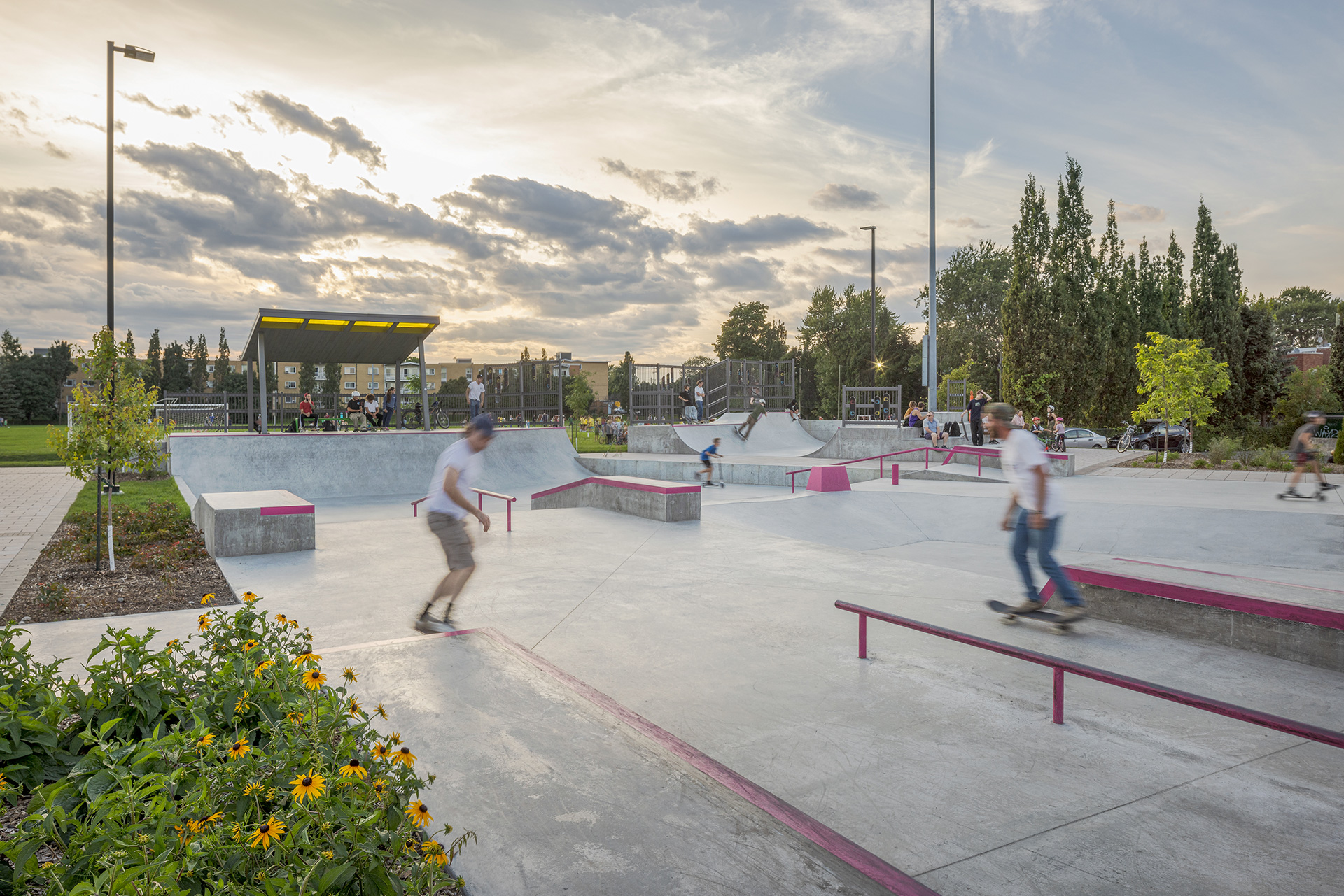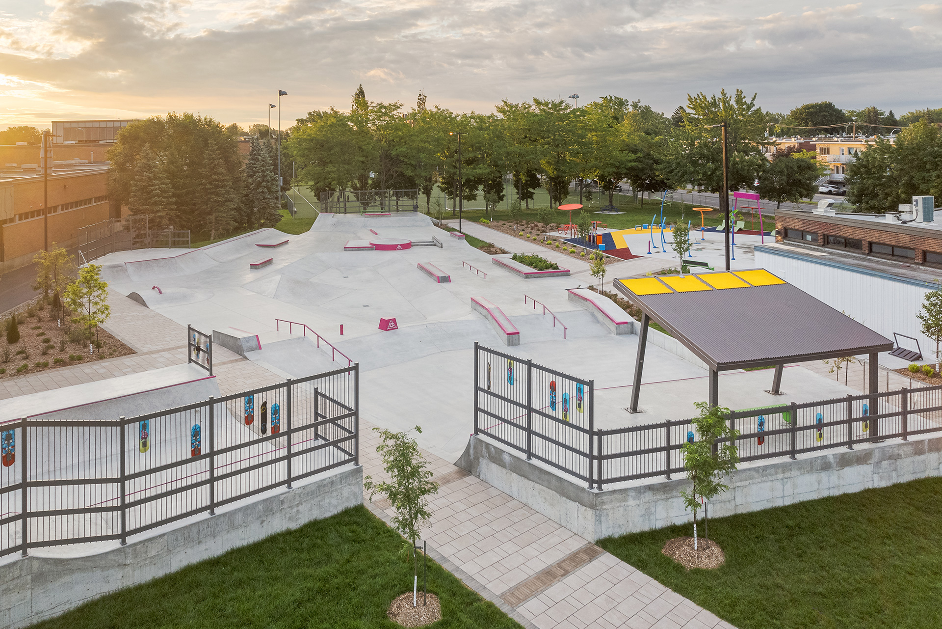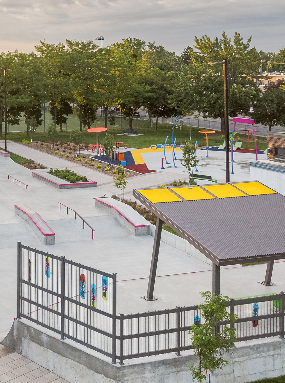 Ce projet consiste en la transformation d’une piscine extérieure publique et d’un skatepark désuet en un skatepark contemporain et des jeux d’eau intégrés, unifiant ces deux espaces autour de la créativité, du mouvement et du jeu libre pour des usagers de tous les âges.